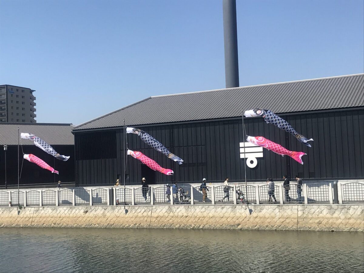 半田運河に50匹以上の鯉のぼりが優雅に泳ぐ姿は絶景! 鯉のぼりと蔵のコントラスト…