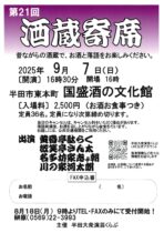 築200有余年の古い酒蔵をそのまま利用したお酒の資料館で落語をお楽しみ頂いた後は、おいしいお酒とお食事をご堪能下さい。 ◇開催日:2025年9月7日(日) ◇時 間:開場16:00 開演16:30 ◇場 所:国盛 酒の文化館 (半田…»続きをみる