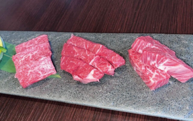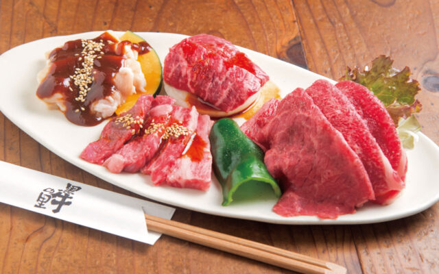 0569-26-1900おすすめはロース・薄切りロース・サーロインの三種の盛り合わせです。肉質の差が最も出やすいサーロインを味わって下さい。