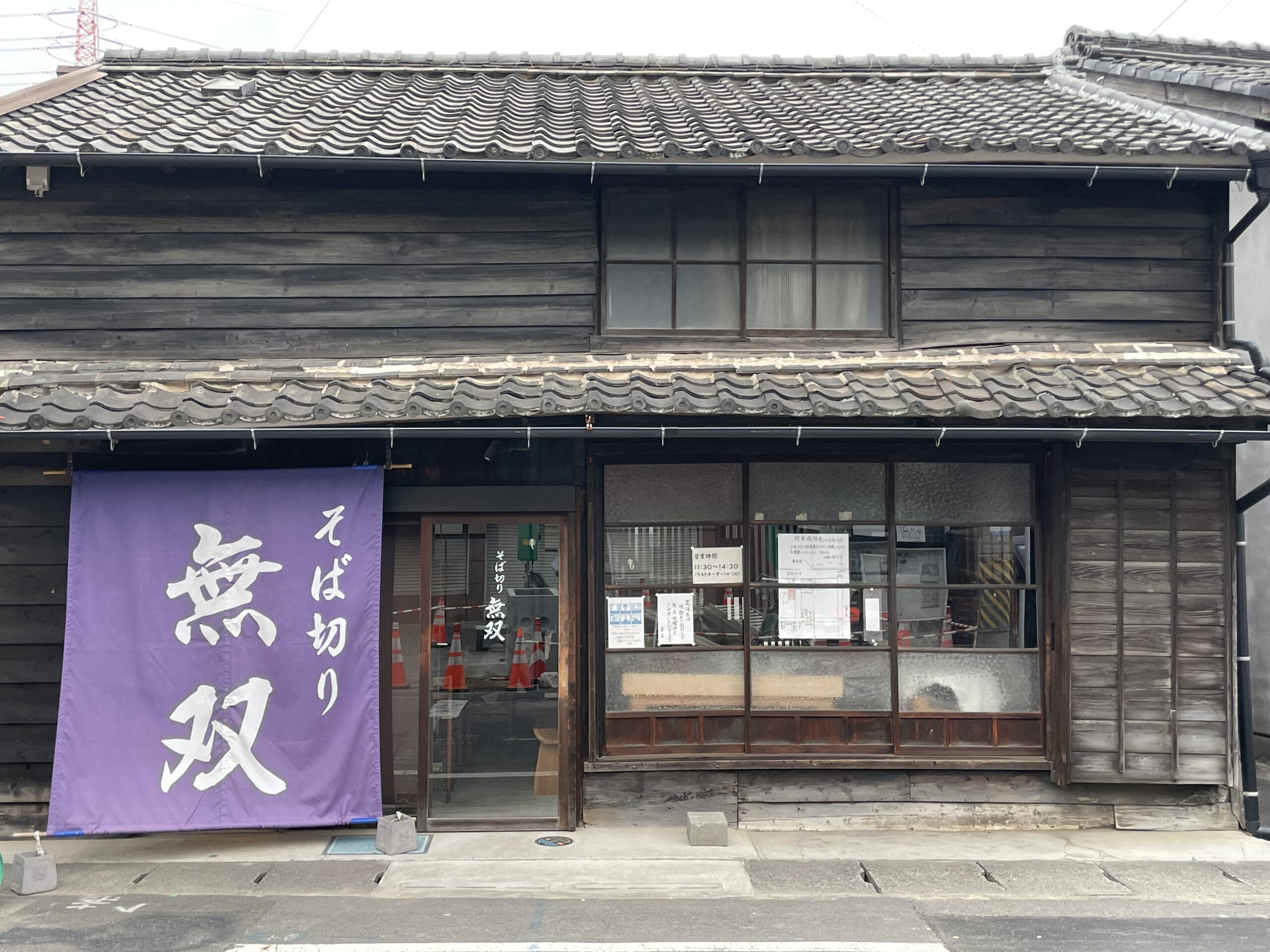 リノベーションした古民家で、打ち立ての外二八そばを提供する。夏場に出される竹製の手作り蕎麦猪口や蕎麦受けも「無双:ひとつとして同じものはない」という名を冠する店主のこだわり。