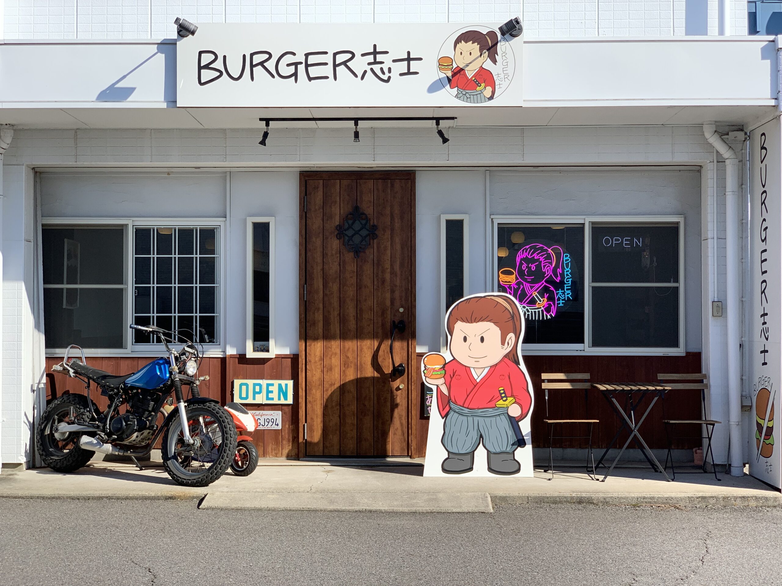 SAMURAIのキャラクターが目印のハンバーガー屋さん「BURGER志士」 扉を開けると、あっと驚く!遊び心ある店内 おすすめメニューは、インパクト抜群!ボリューム満点!看板メニュー「志士くんバーガー」 志士くんと共に半田市を盛り上げるぜよ!