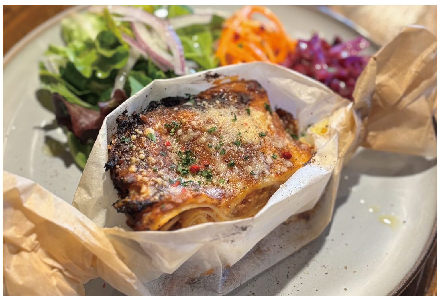 半田の隠れ家的酒場。地元の味噌を使ったラグーソースのバーガーやパスタ、中埜酒造の酒粕を使った鶏ハムをお洒落な音楽とともにどうぞ。