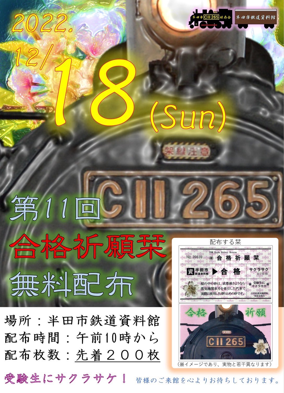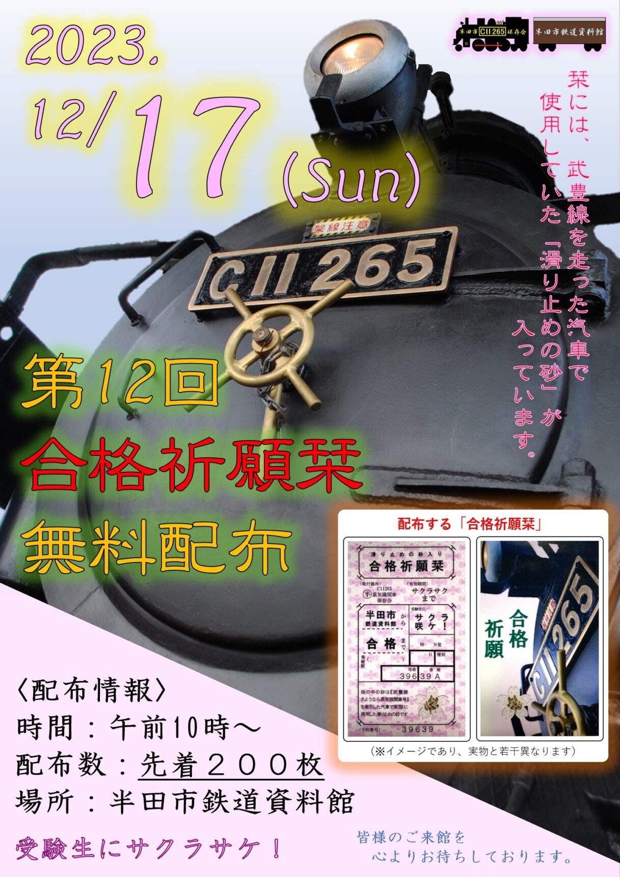 半田市鉄道資料館『第12回 合格祈願栞無料配布』