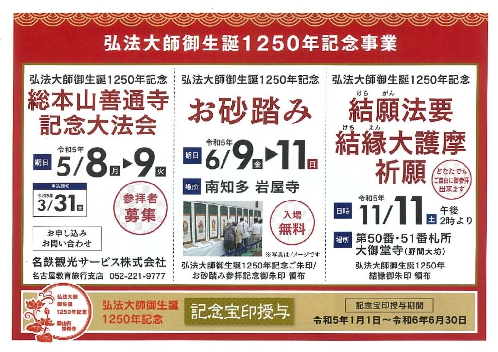 そして、2023年は弘法大師ご生誕1250年の記念年。各寺院から記念宝印が発行されたり、ご生誕1250年記念事業も開催されます。この機会に、知多半島でお遍路してみませんか?