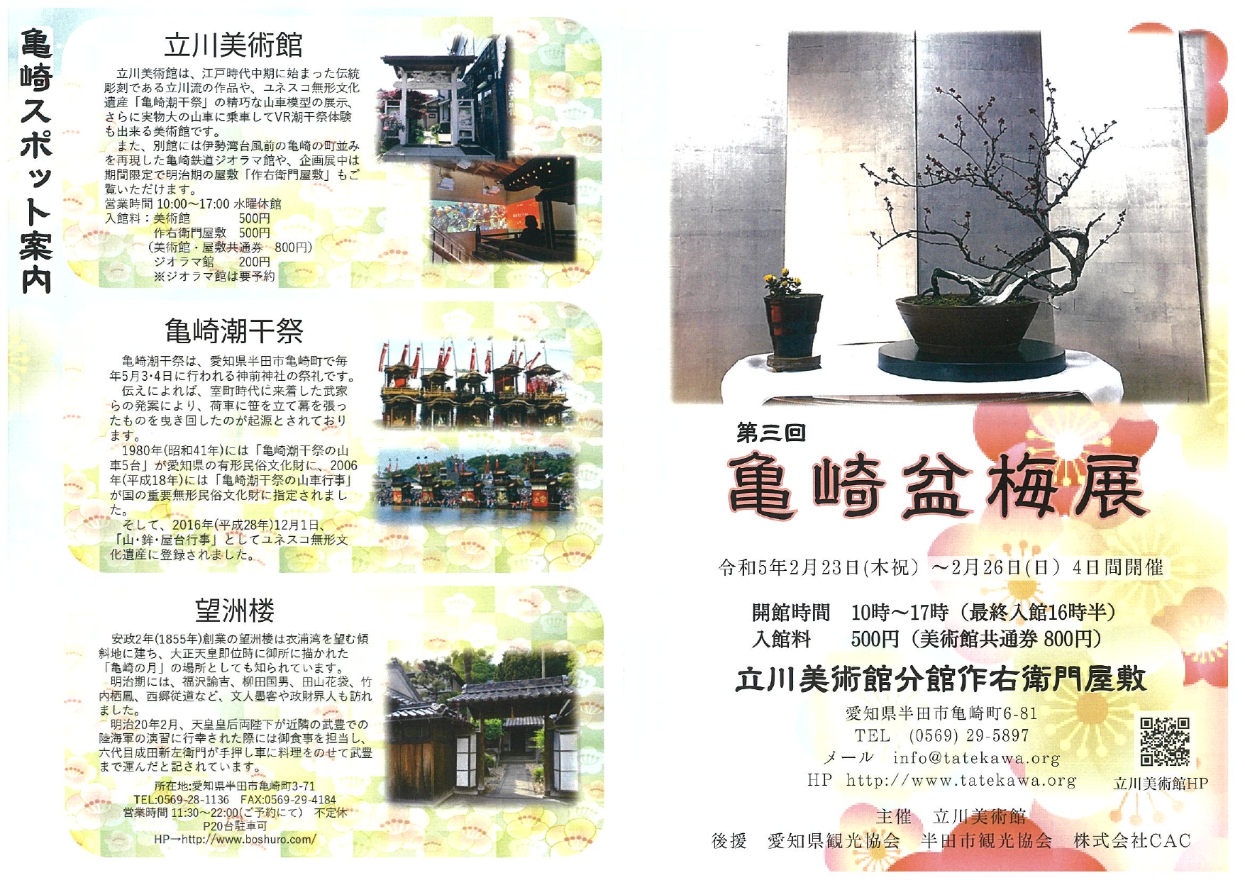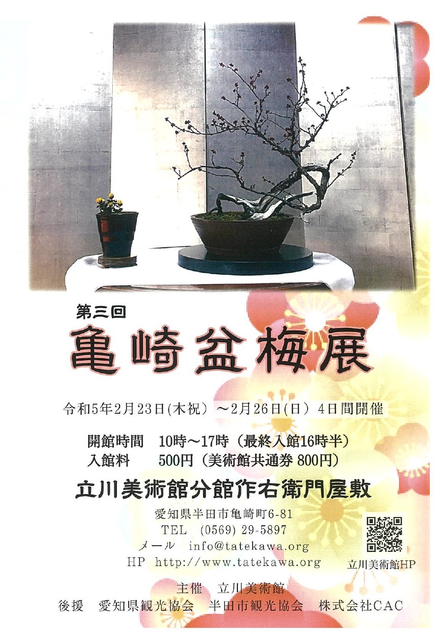 その作右衛門屋敷で開催される亀崎盆梅展。愛情込めて育てられた盆梅を海運醸造の歴史を見守ってきた趣あるお屋敷でごゆるりとご堪能下さい。