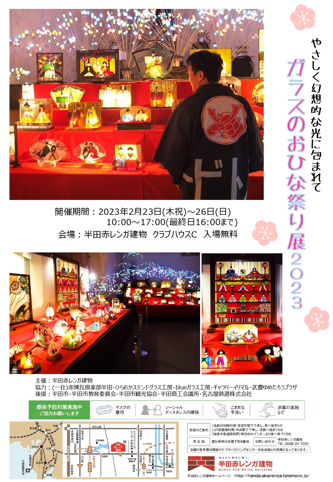 ◇関連HP:ガラスのおひな祭り展2023 | 半田赤レンガ建物 (handa-akarenga-tatemono.jp)