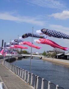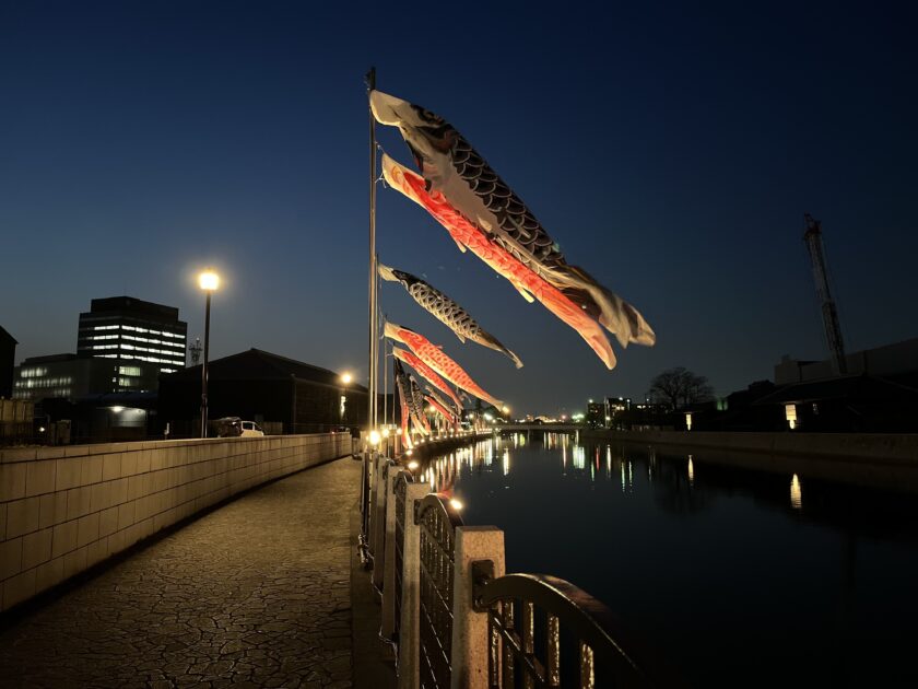 蔵のまちエリア 2024/02/14 up 半田運河の鯉のぼり 開催日程 2024/4/135/12 開催場所 半田運河沿い 半田運河に50匹以上の鯉のぼりが優雅に泳ぐ姿は絶景!鯉のぼりと蔵のコントラストの美しさは訪れた人を魅了します。期間中の18時~22時はライトアップも行われ、幻想的な雰囲気に包まれます。 ◇開催日:2024年4月13日(土)~5月12日(日) ◇場 所:半田運河沿い ◇駐車場:蔵のまち東駐車場 ※無料(徒歩10分ほど) ◇料 金:無料 ◇お問合せ:半田市観光協会 0569-32-3264