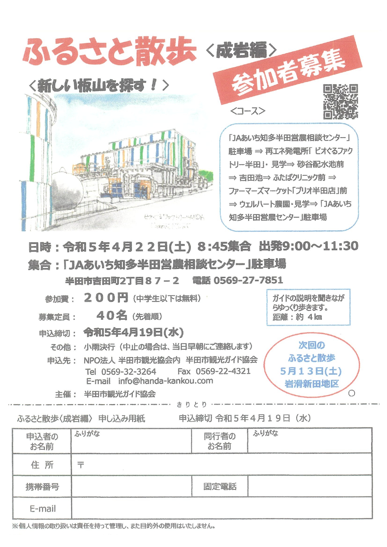 集合場所ですが、チラシ等には「JAあいち知多板山支店駐車場」と掲載していますが、変更になりました。