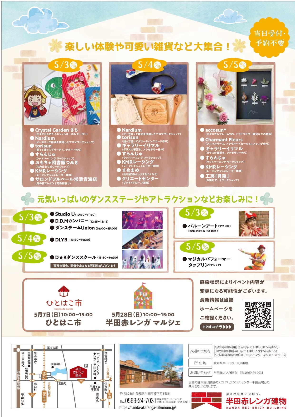 ◇関連HP:<5月3日・4日・5日開催>GWファミリーフェスティバル | 半田赤レンガ建物 (handa-akarenga-tatemono.jp)