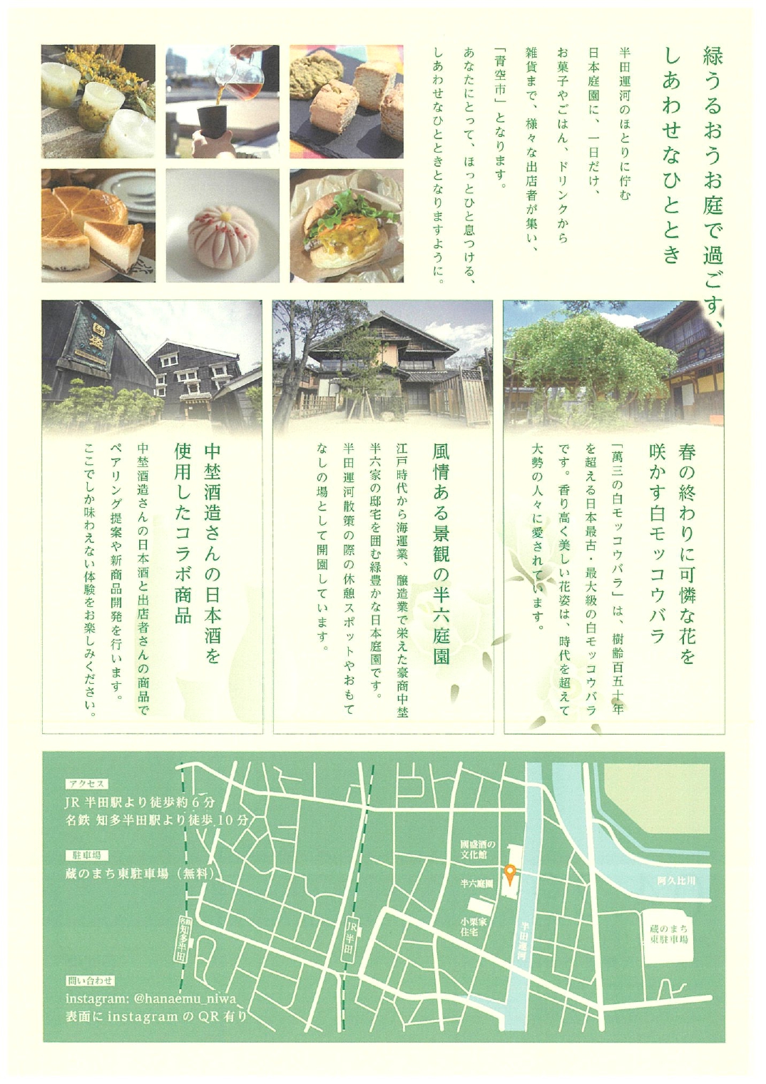 半田運河のほとりに佇む日本庭園で、一日だけの『青空市』を開催します。