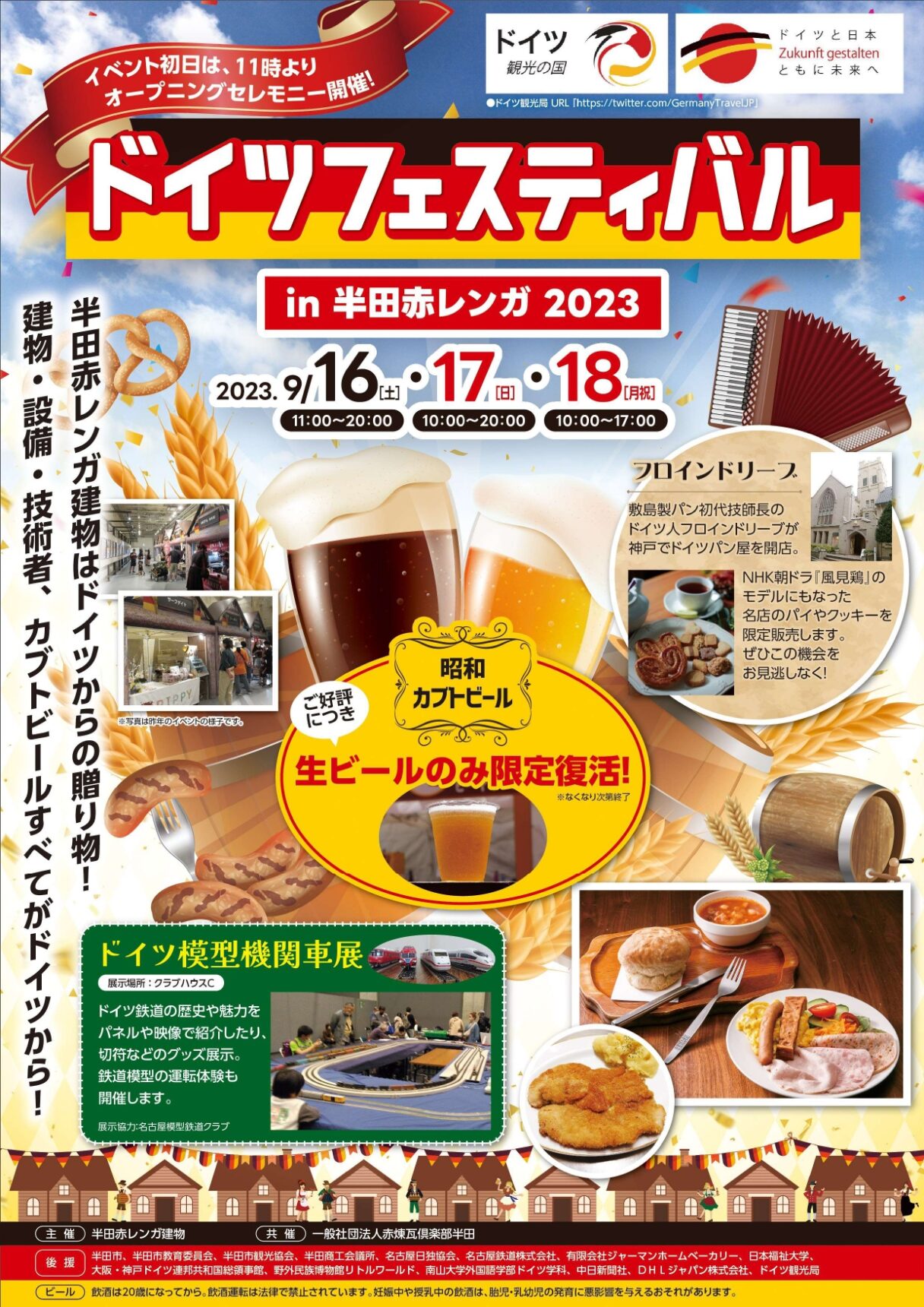 ◇関連HP:【9月16日~18日開催】ドイツフェスティバル in 半田赤レンガ2023 | 半田赤レンガ建物 (handa-akarenga-tatemono.jp)