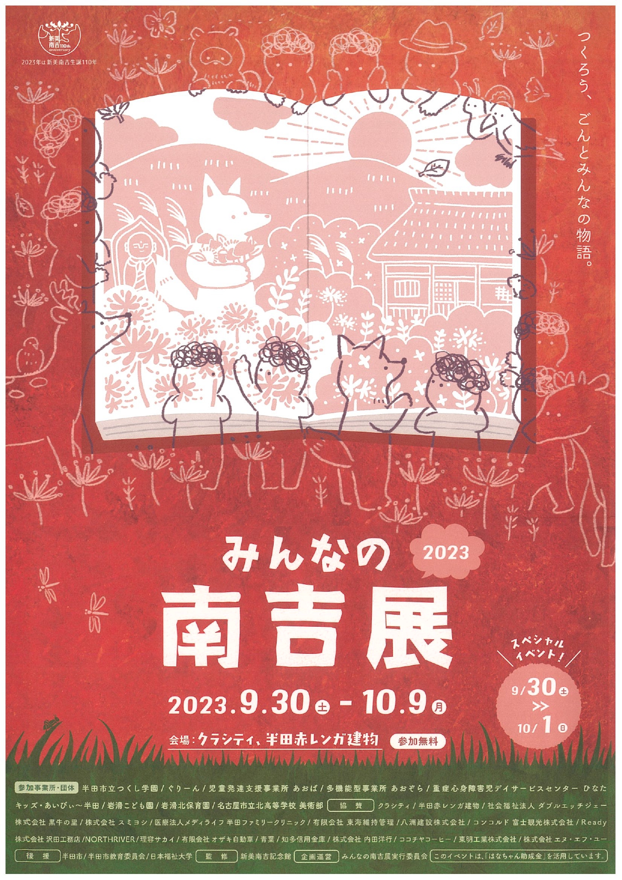 9月30日(土)・10月1日(日)にはスペシャルイベントを開催。南吉童話の読み聞かせやおはなしコンサート、造形講師による創作ワークショップなど、お子様連れで楽しめる企画盛りだくさんです♪