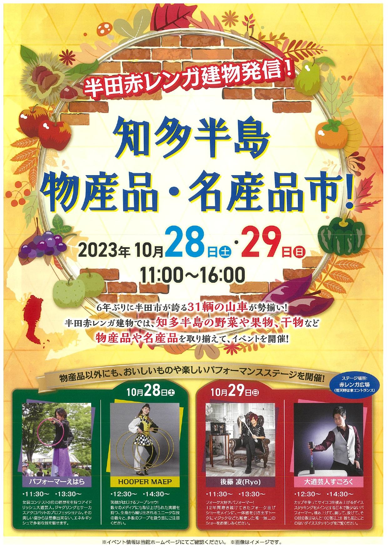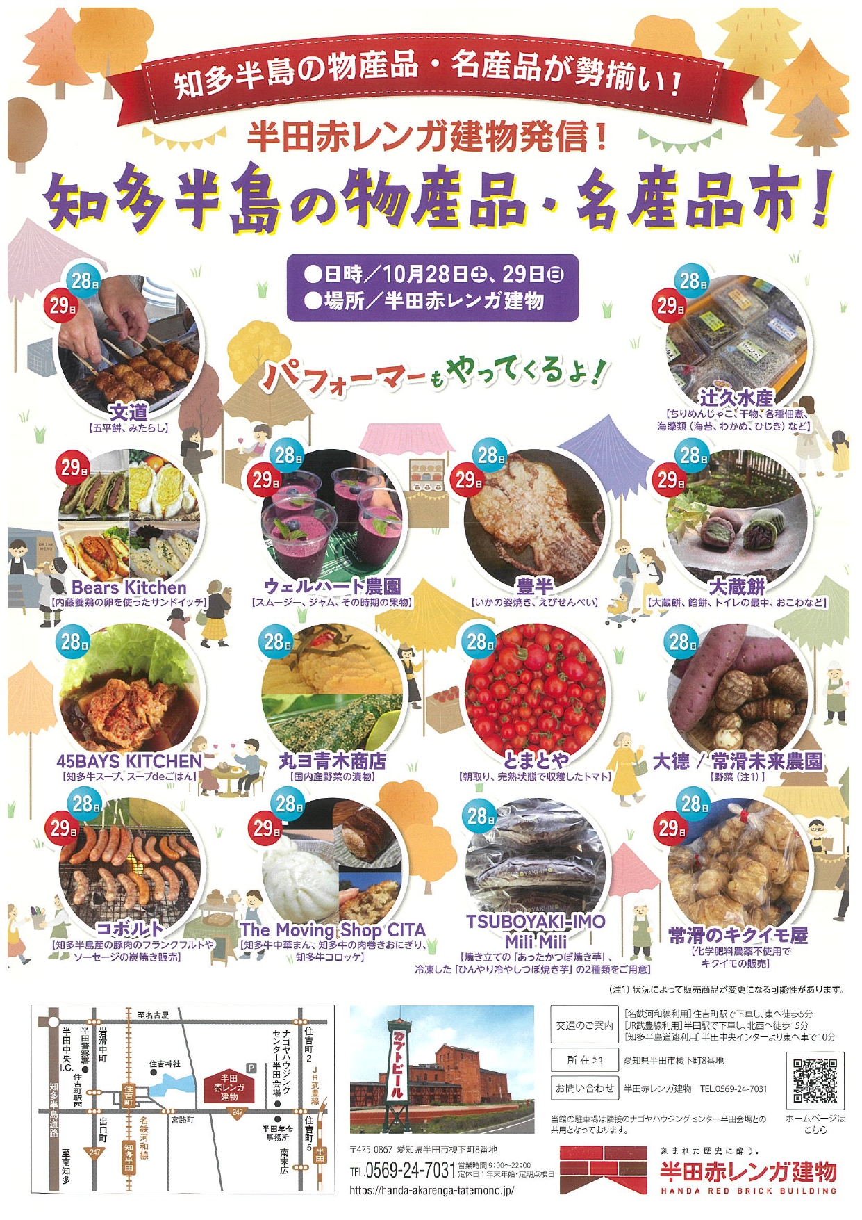 ◇関連HP:<10月28日・29日開催>半田赤レンガ建物発信!知多半島 物産品!名産品市! | 半田赤レンガ建物 (handa-akarenga-tatemono.jp)
