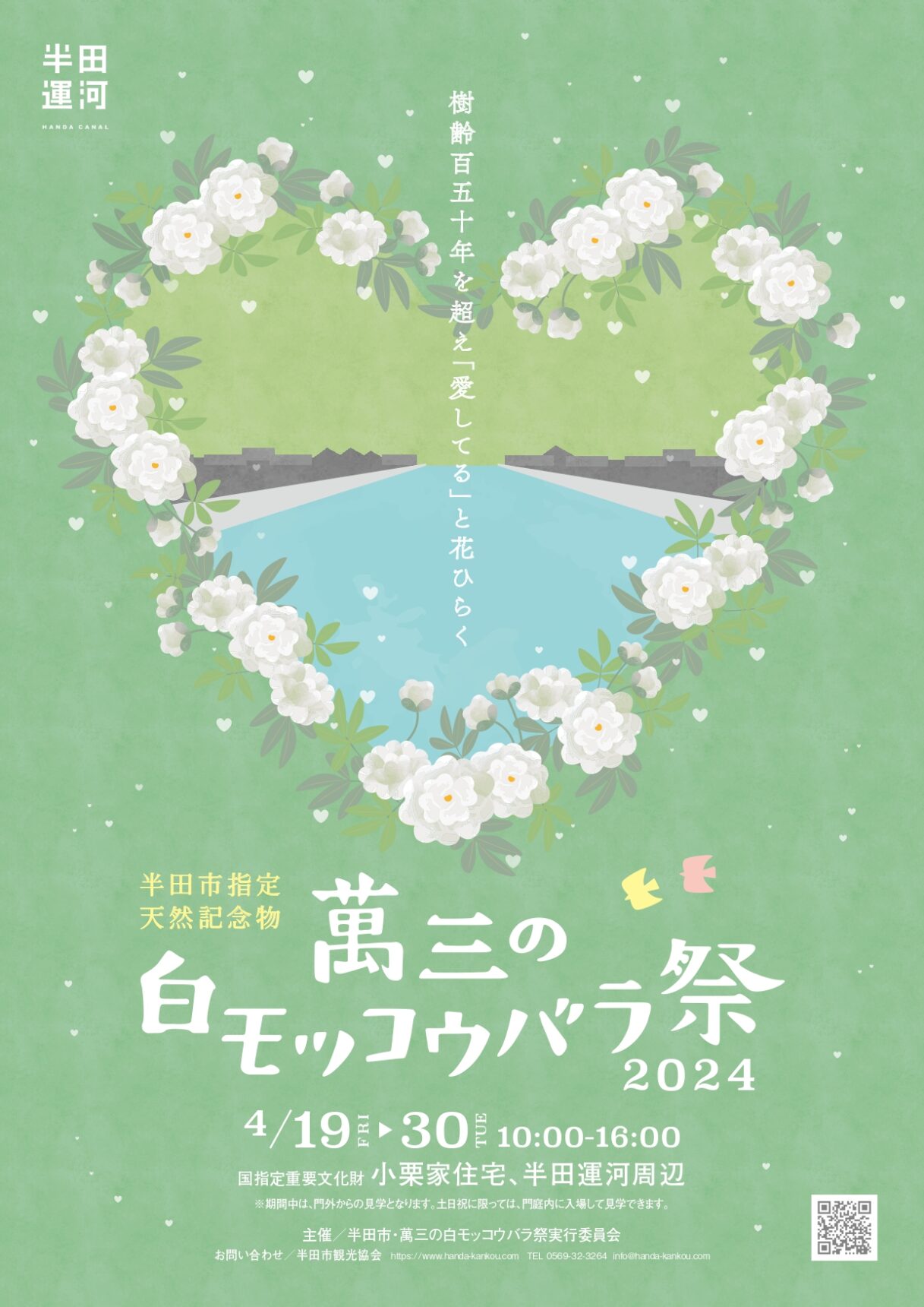 「萬三の白モッコウバラ」は、樹齢150年を超える日本最古・最大級の白モッコウバラです。香り高く美しい花姿は、時代を超えて大勢の人々に愛されています。長い時間をかけ成長したツルがハートの形をしていることから「愛」を象徴する木とされ、フォト スポットとしても人気です。