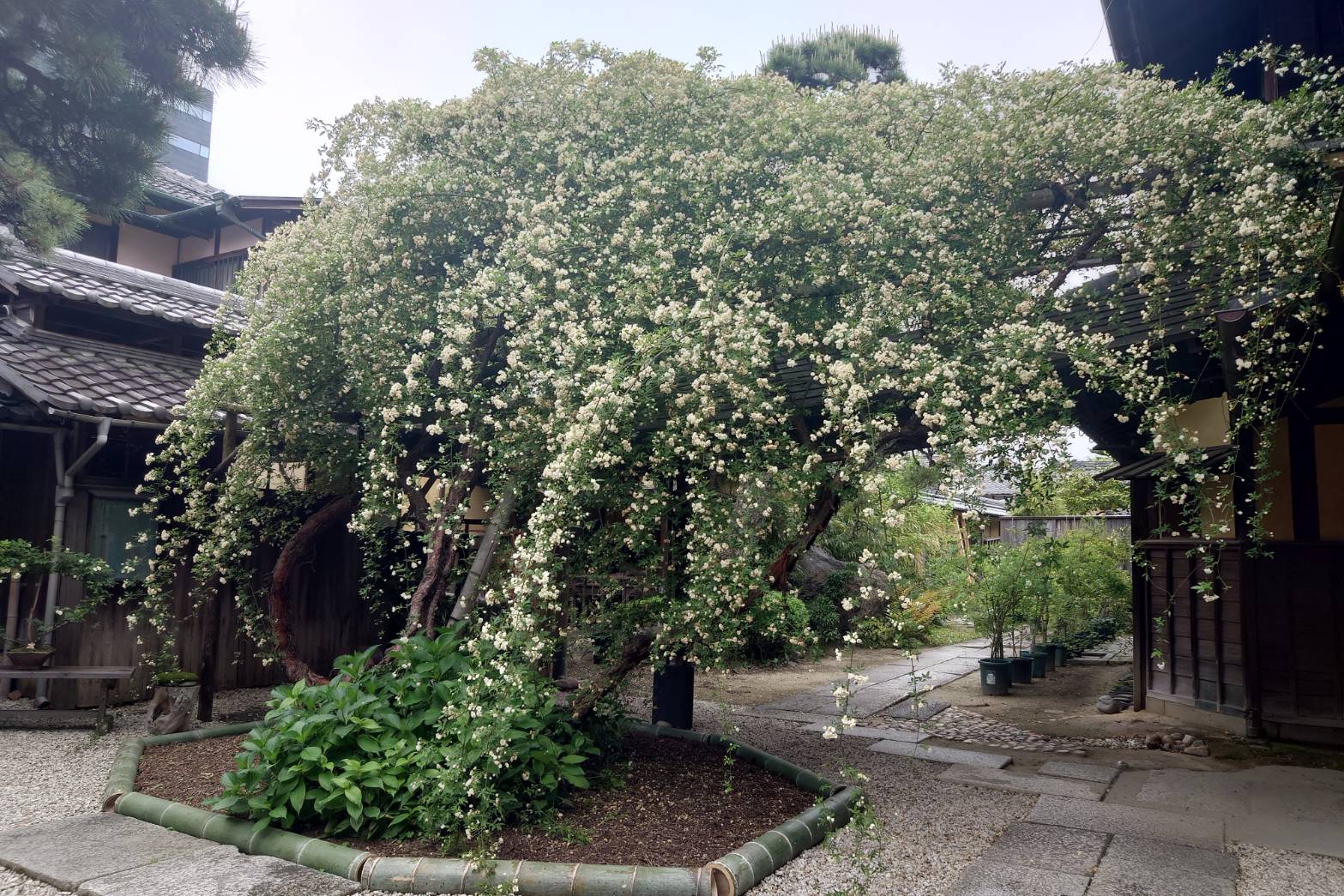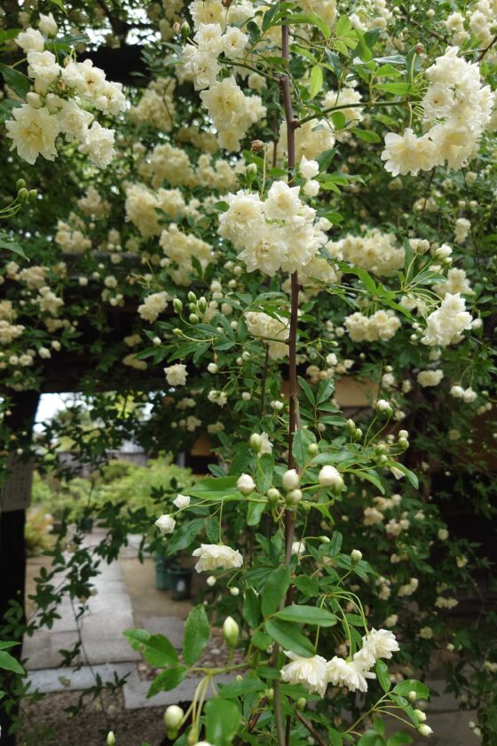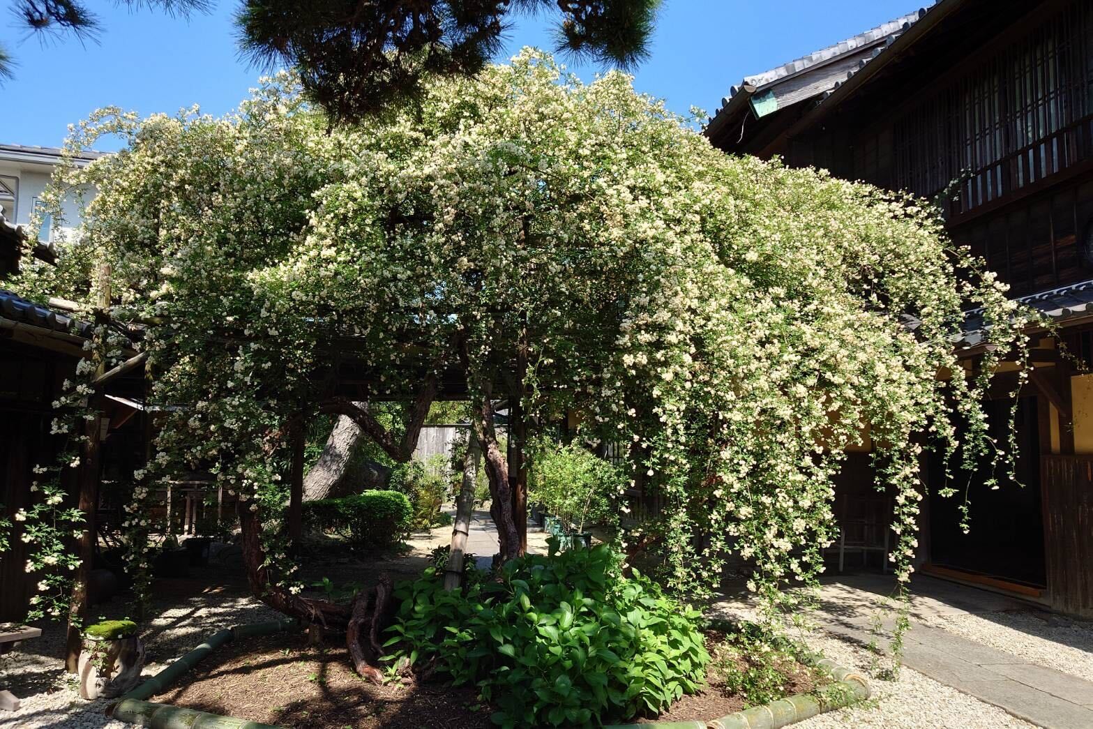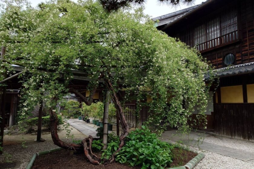 小栗家住宅 門庭に咲く日本最古・最大級の白モッコウバラ