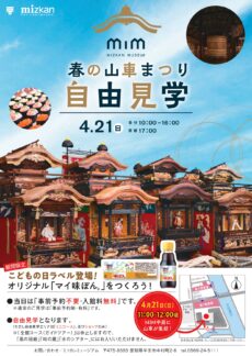また、当日11:00~12:00頃、MIM中庭に集結した下半田地区4輌の山車を館内よりご覧頂けます。MIMと伝統ある半田の山車を一度にお楽しみ頂けるこのチャンスをお見逃しなく!
