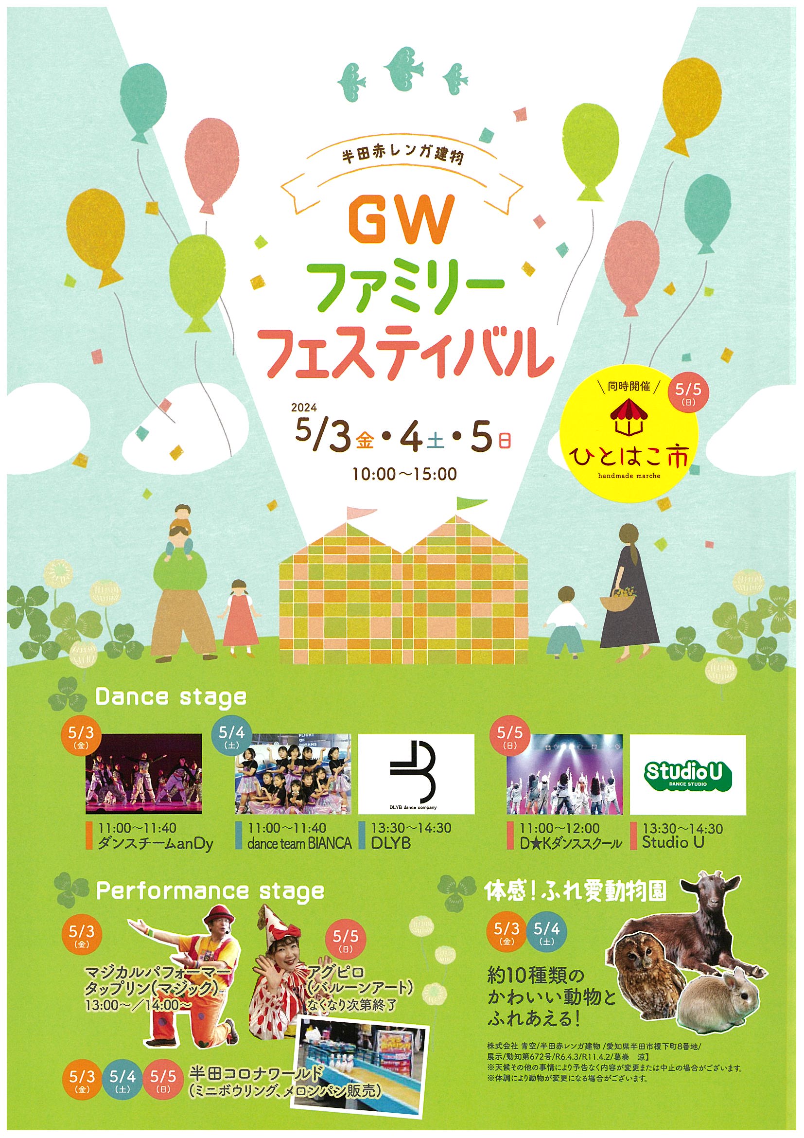 ◇関連HP:<5月3日・4日・5日開催>GWファミリーフェスティバル | 半田赤レンガ建物 (handa-akarenga-tatemono.jp)