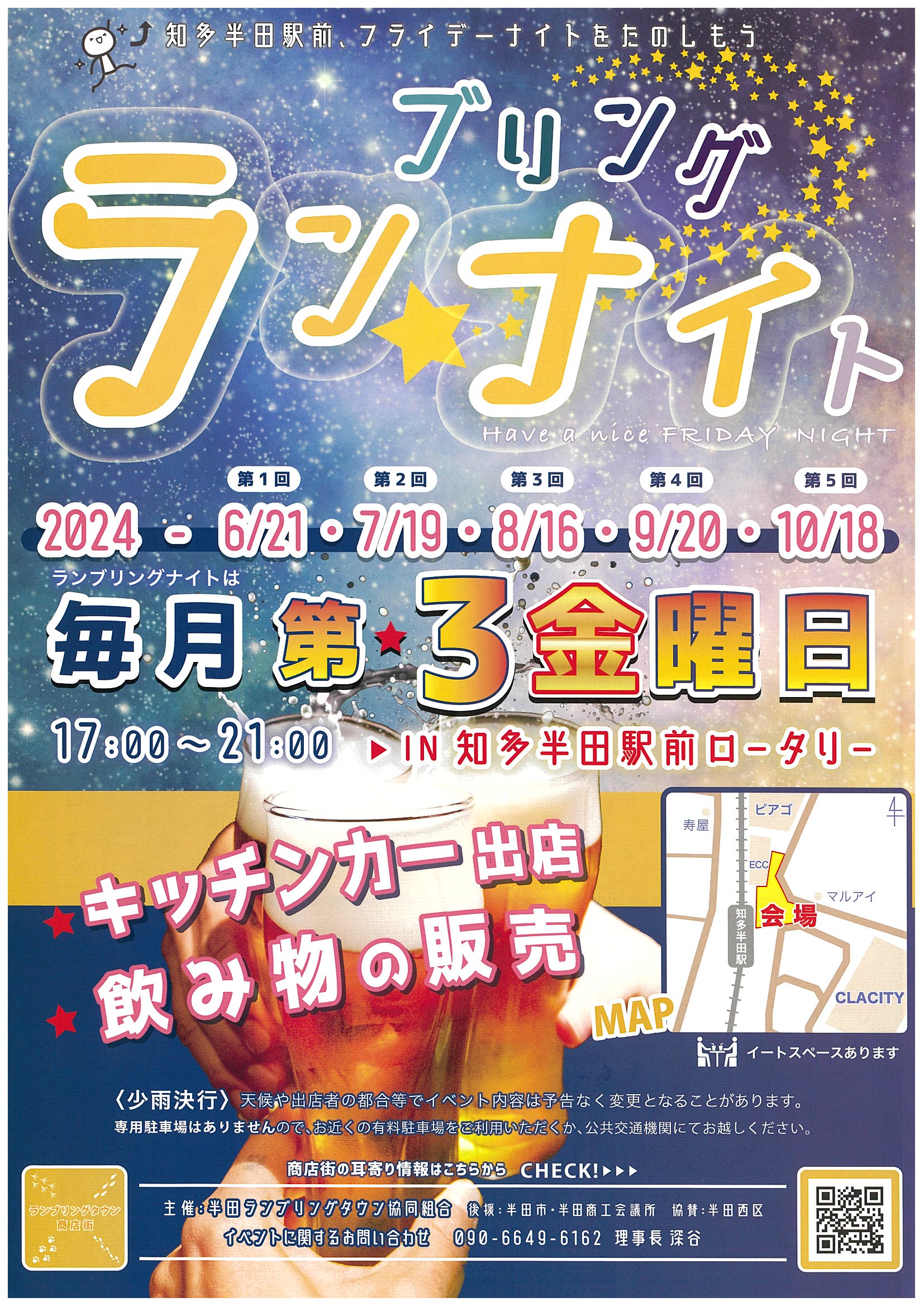 いつも元気な知多半田駅前の商店街ランブリングタウンが、毎月第3金曜日に『ランブリングナイト』を開催します♪