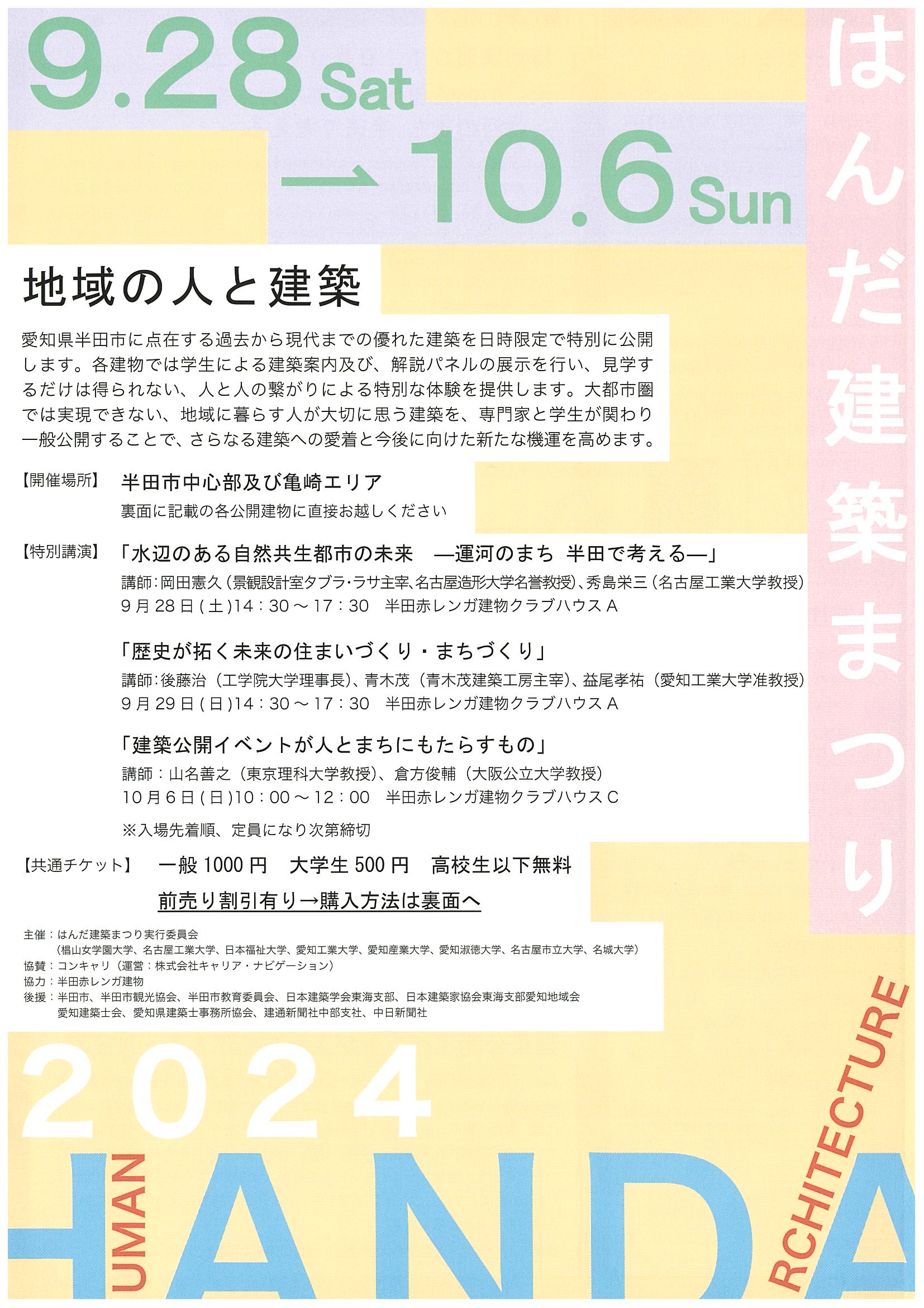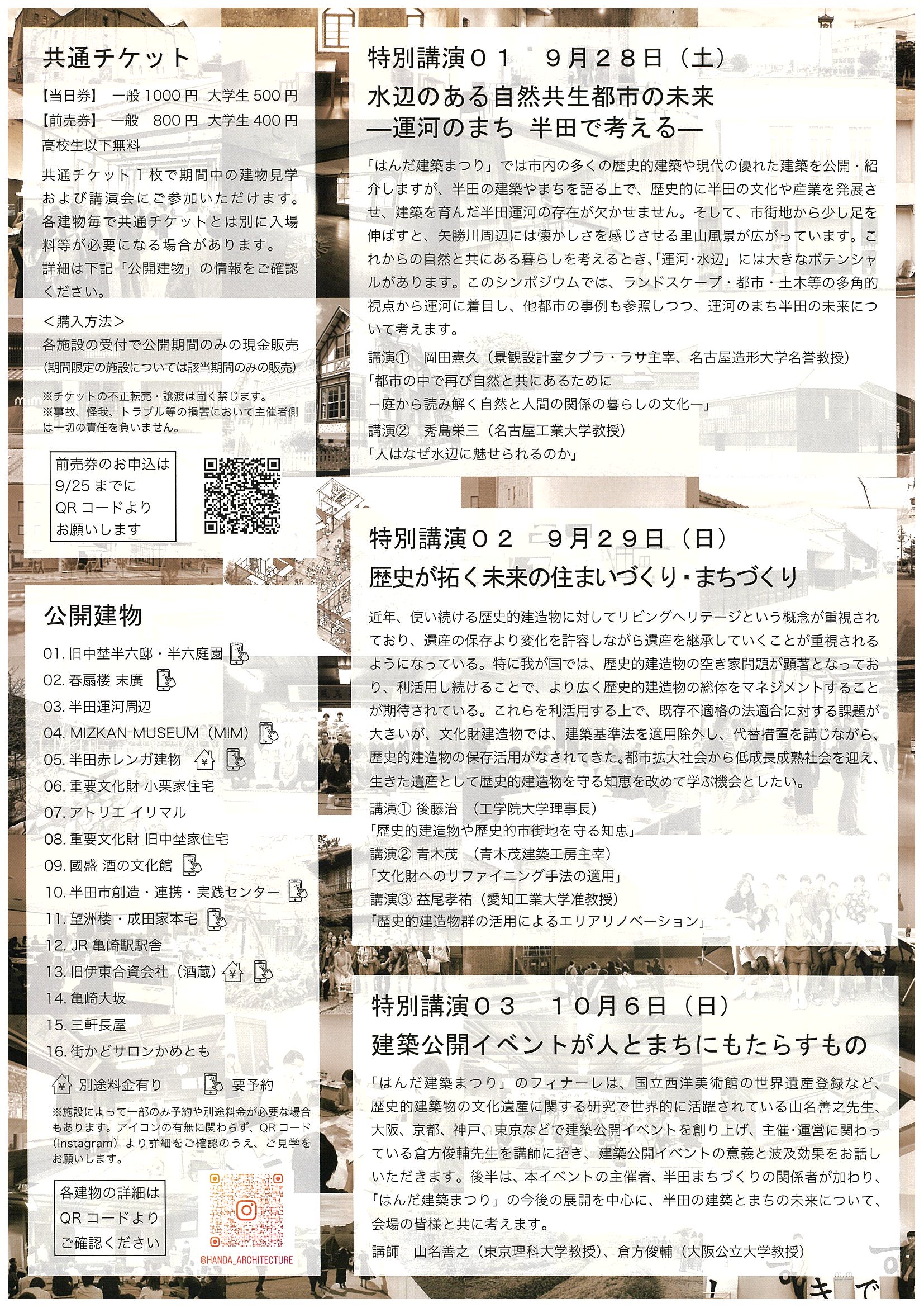 また、専門家による特別講演も開催。様々な視点から半田の未来を考えていきます。
