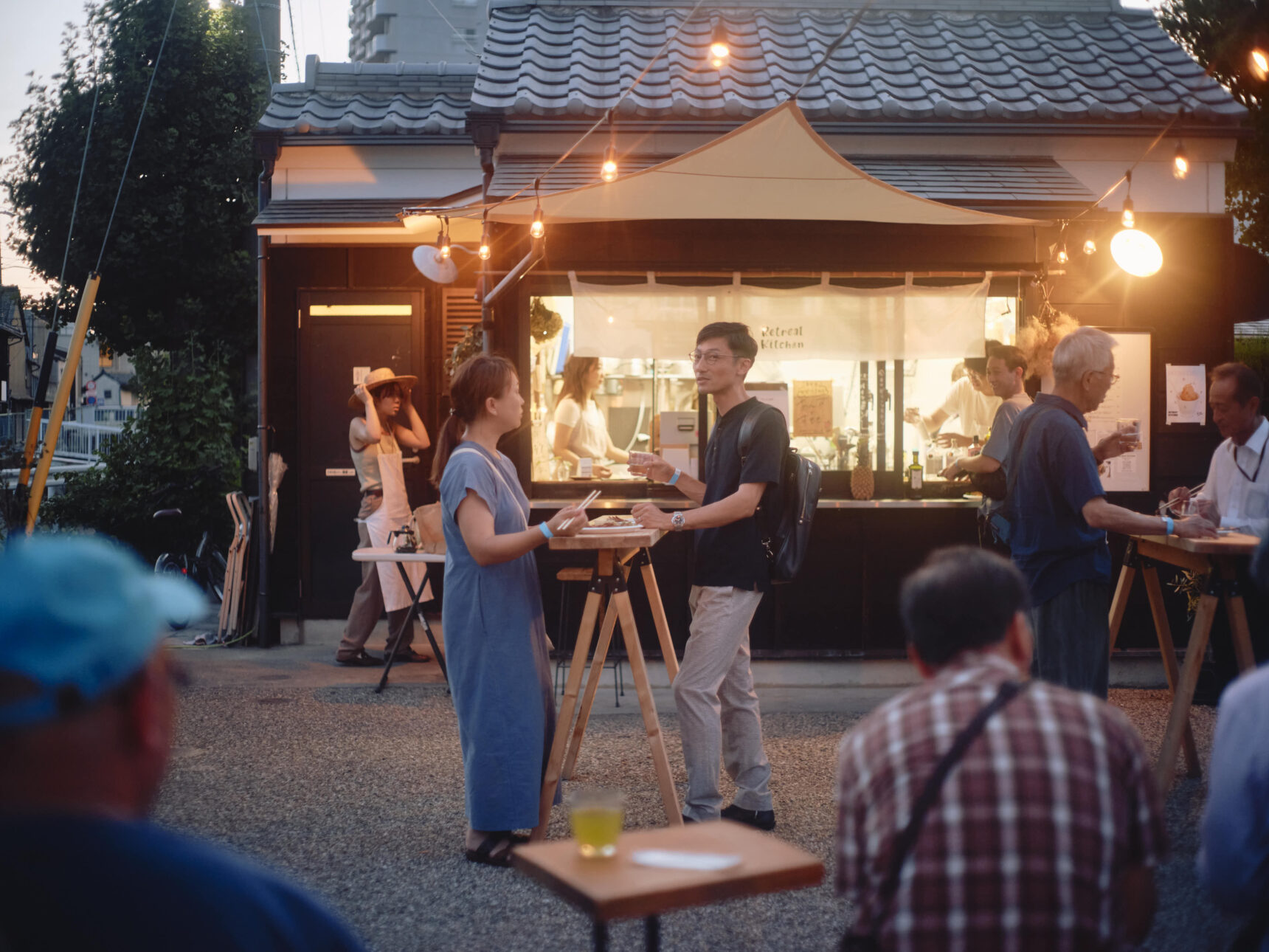 みんなで協力して屋台をくみたてて、酒場がはじまる。