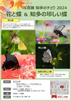 『花と蝶』、『知多の珍しい蝶』をテーマに約40点の写真でご紹介します。