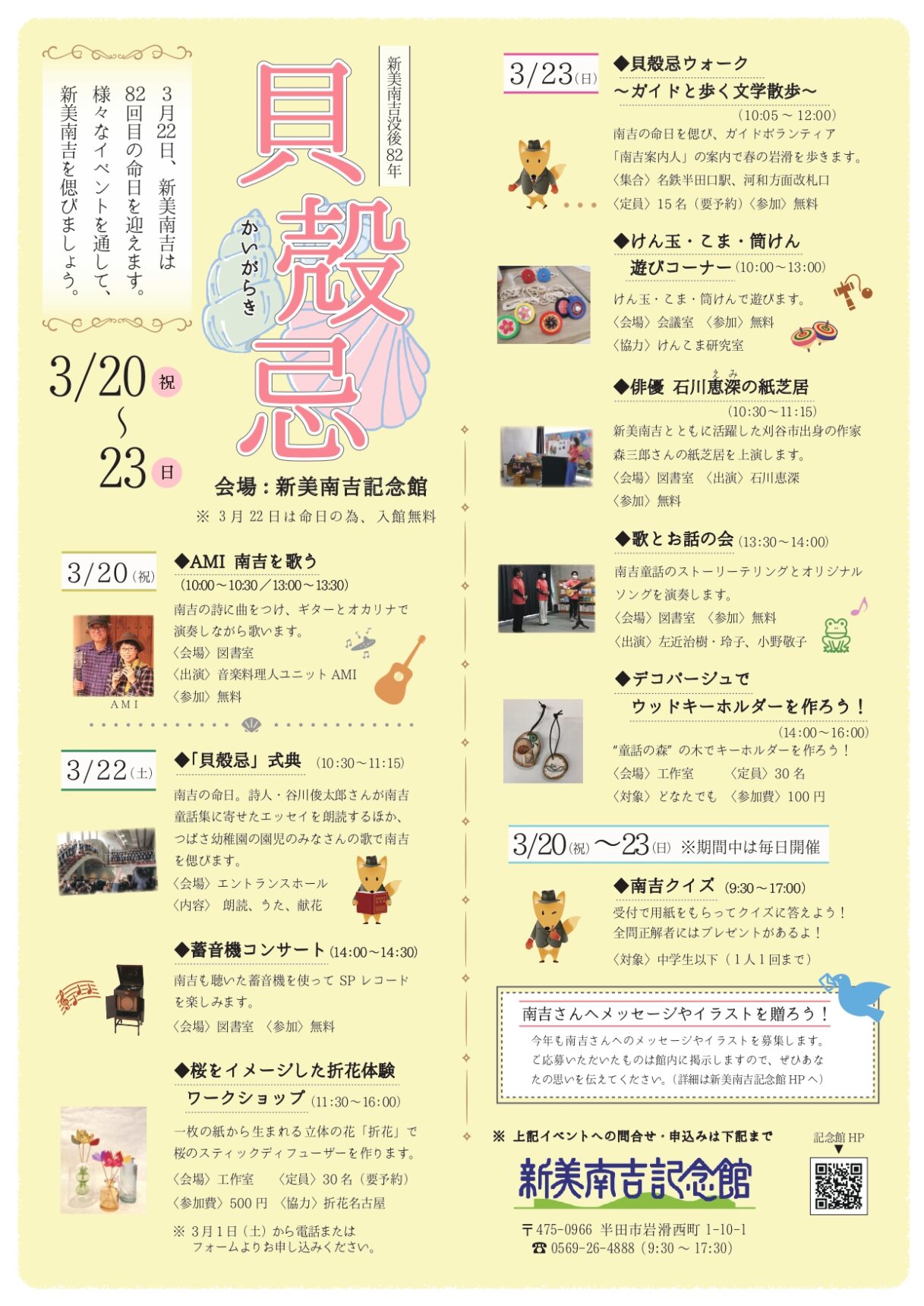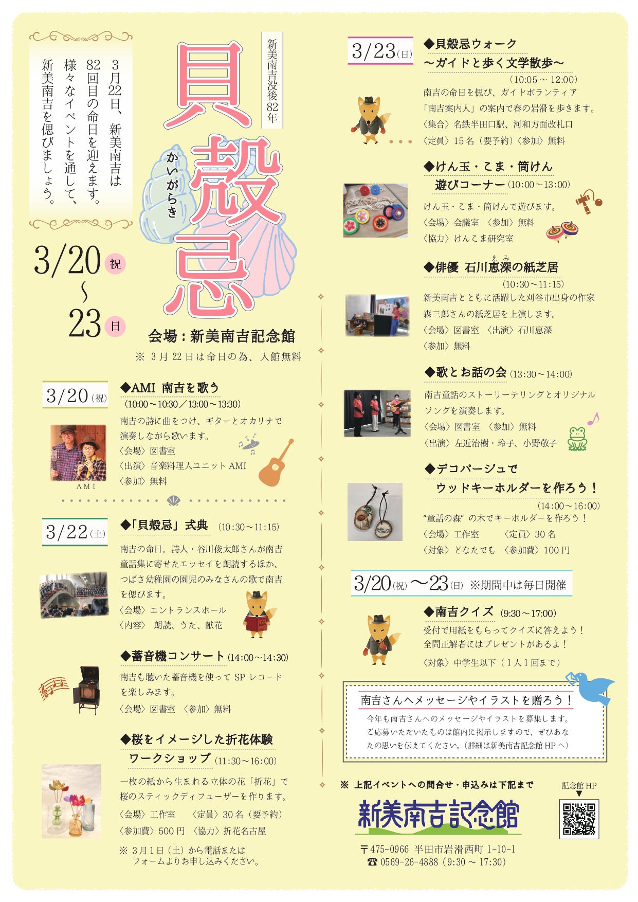 ※イベント詳細はチラシ、または新美南吉記念館HPイベントページ(イベント (nankichi.gr.jp))よりご確認下さい。