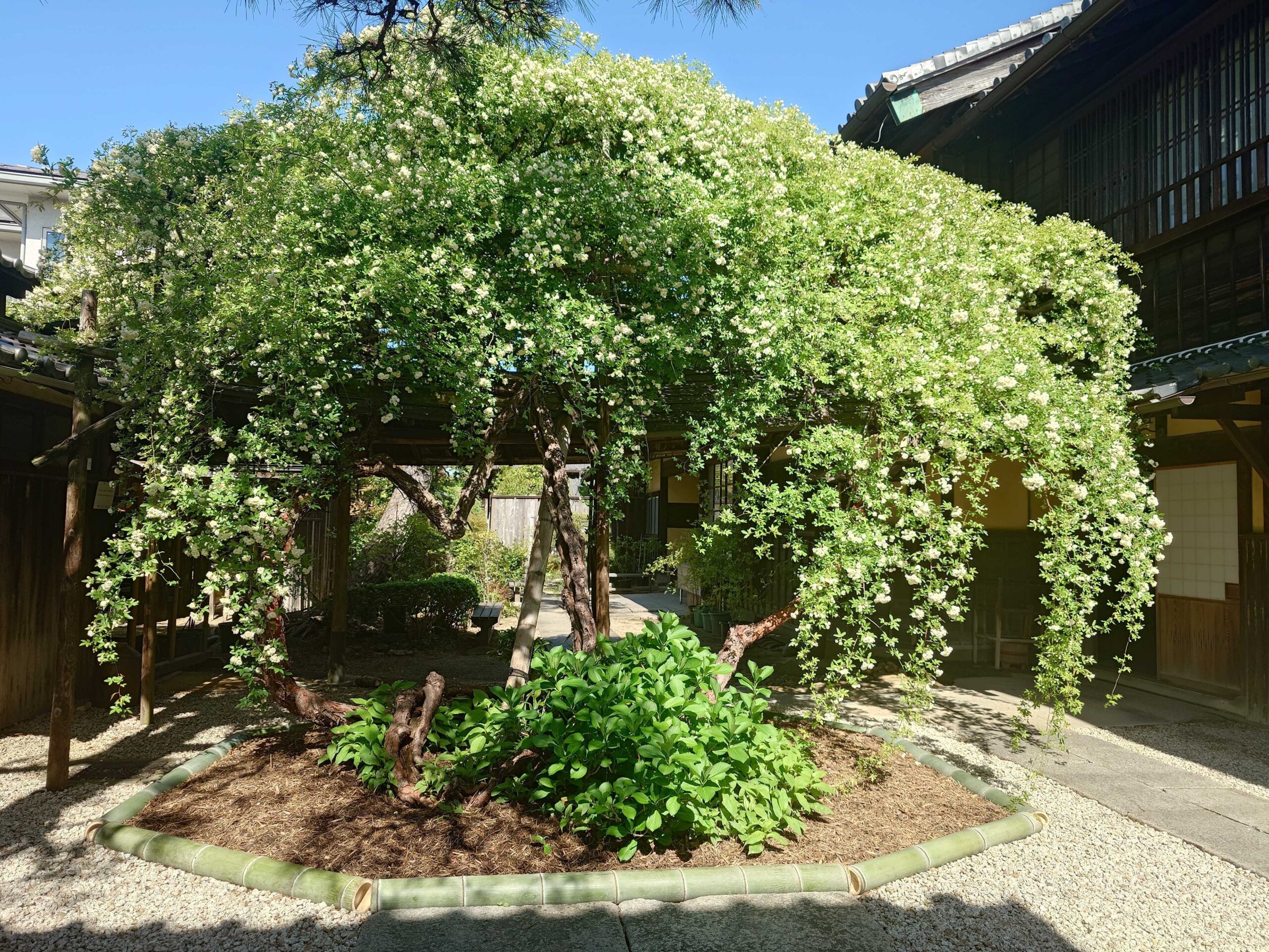 「萬三の白モッコウバラ」は、樹齢150年を超える日本最古・最大級の白モッコウバラです。