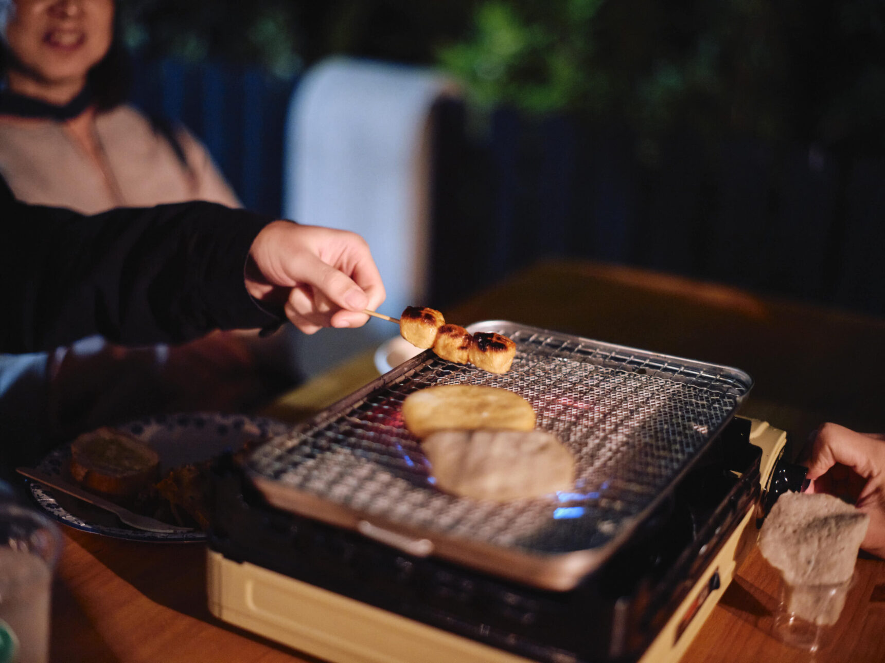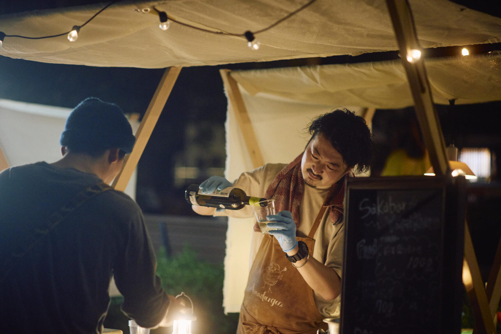 いろいろな料理とお酒の中から、自分の好きなものを、好きなだけセレクトしてDJが流す心地よい音楽と夜風に包まれながら、半田運河で乾杯。