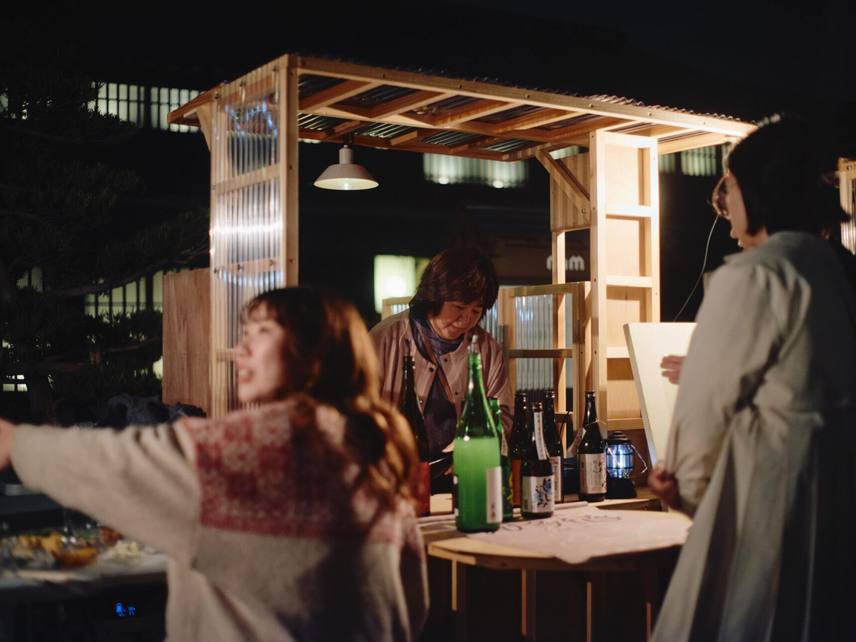 きてみんなで協力して屋台をくみたてて、酒場がはじまる。