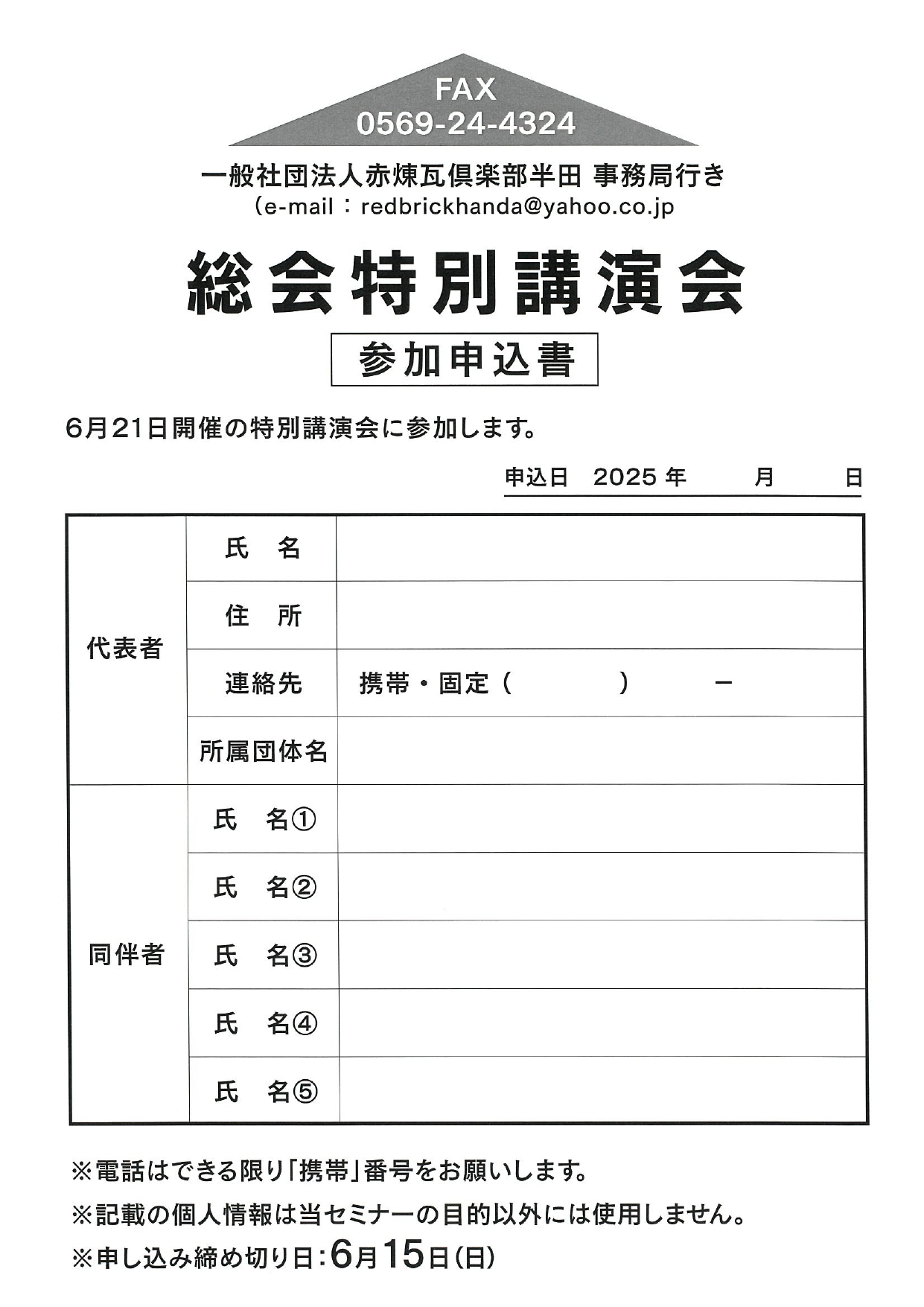 赤煉瓦倶楽部半田の宛先へご送付ください。
