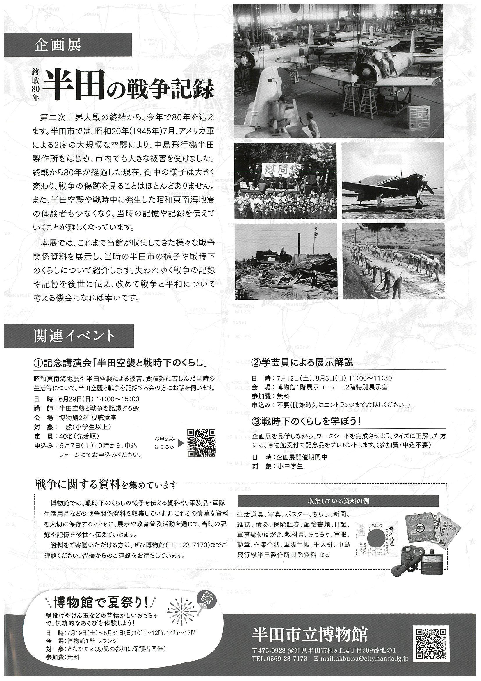 企画展 終戦80年 半田の戦争記録