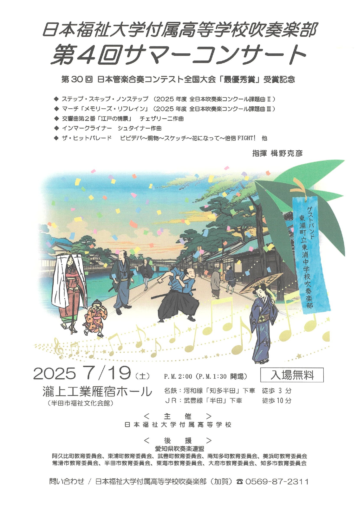 ◇問合わせ:日本福祉大学付属高等学校吹奏楽部(加賀)