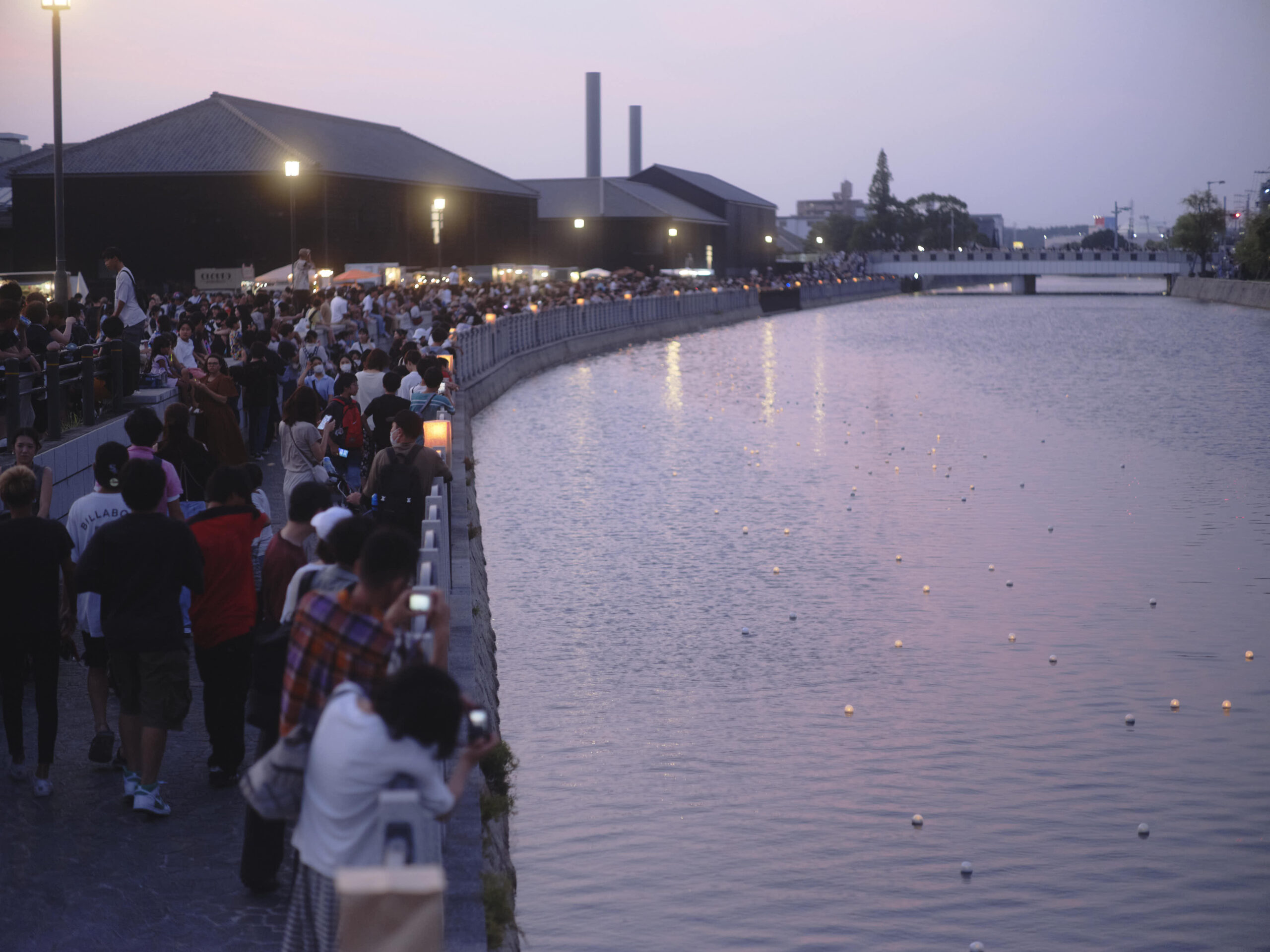 本イベントでは、ゆらゆらと発光する光の玉を夜の半田運河へ一斉に投げ入れ、みんなで一緒に運河をライトアップします。