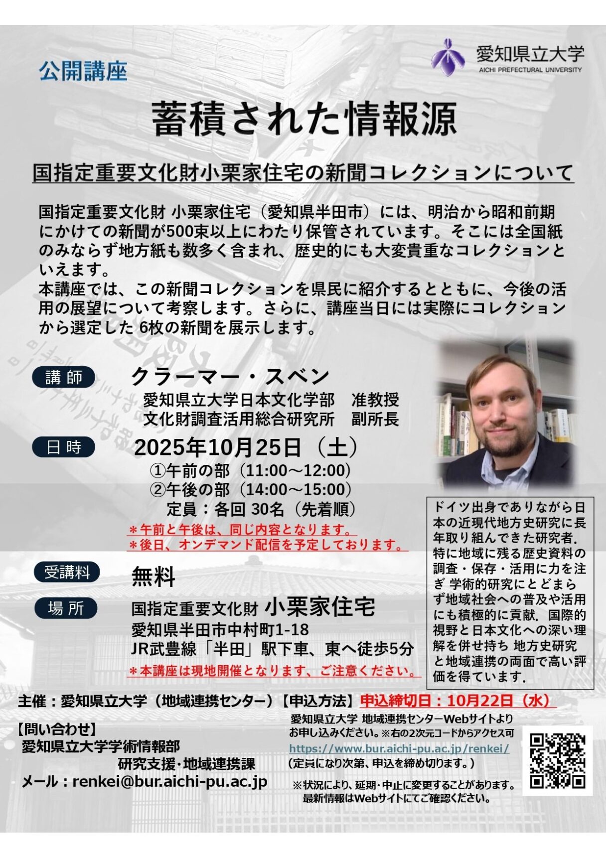 本講座では、この新聞コレクションを県民に紹介するとともに、今後の活用の展望について考察します。