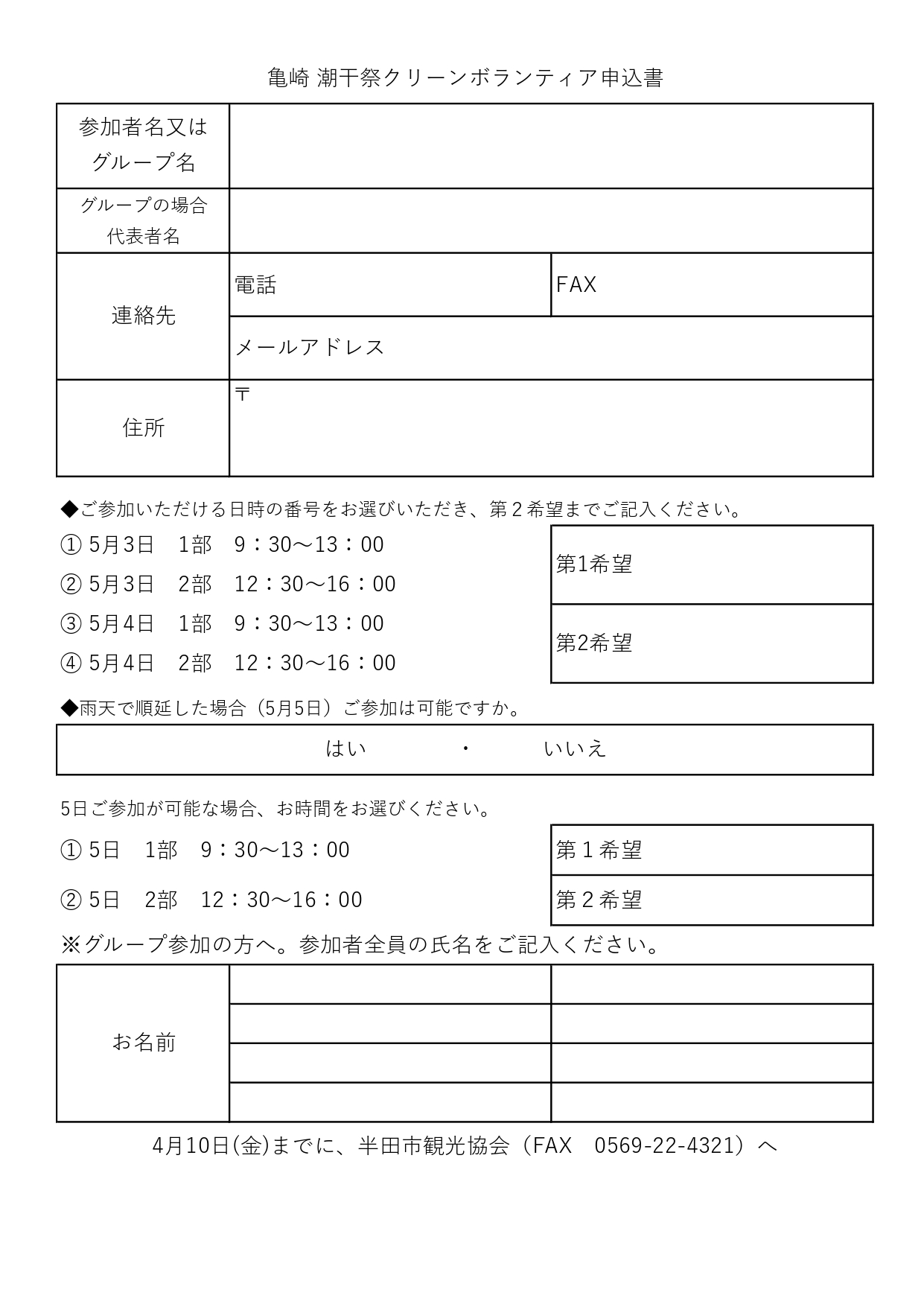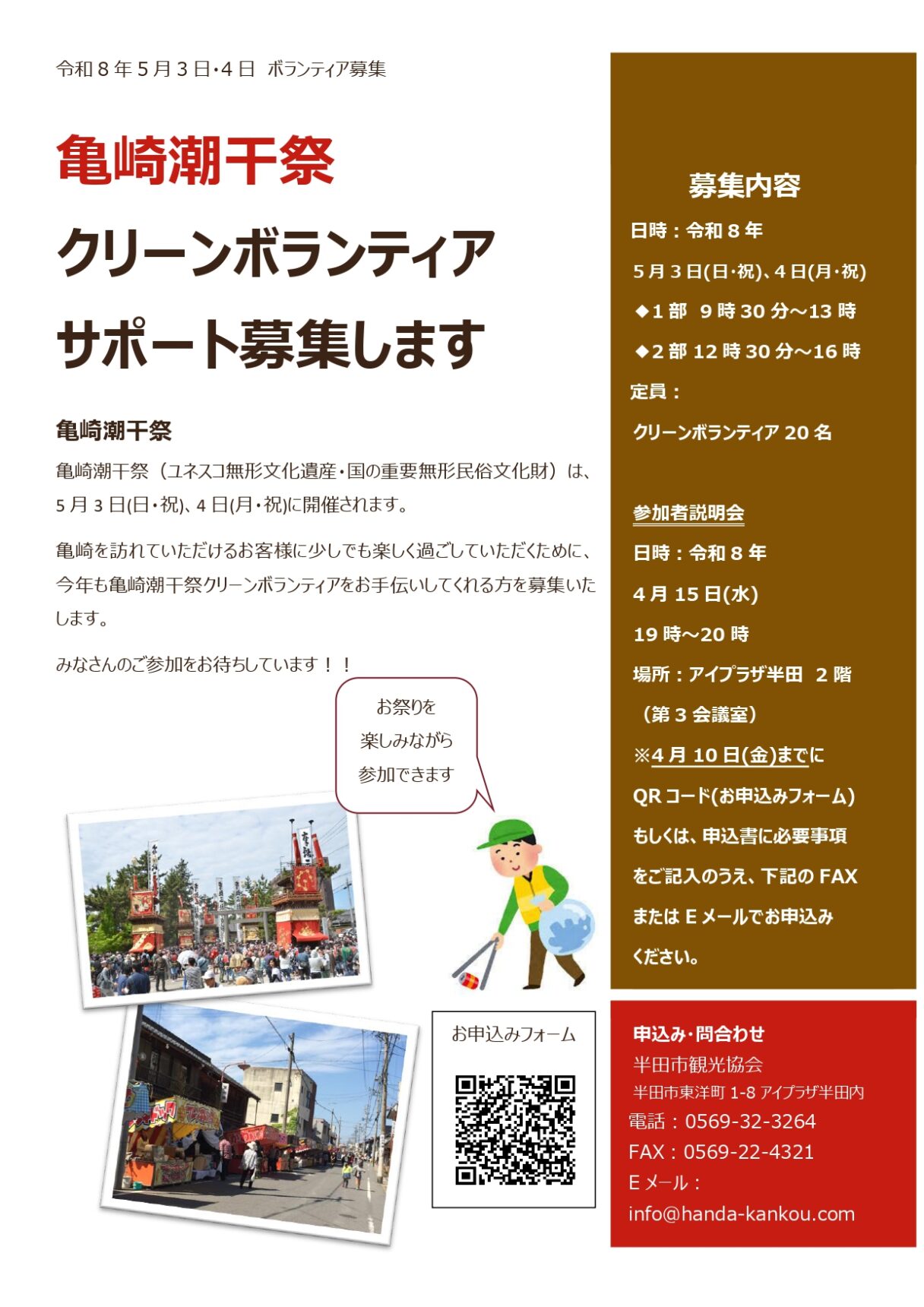 亀崎 潮干祭クリーンボランティアサポートを募集します