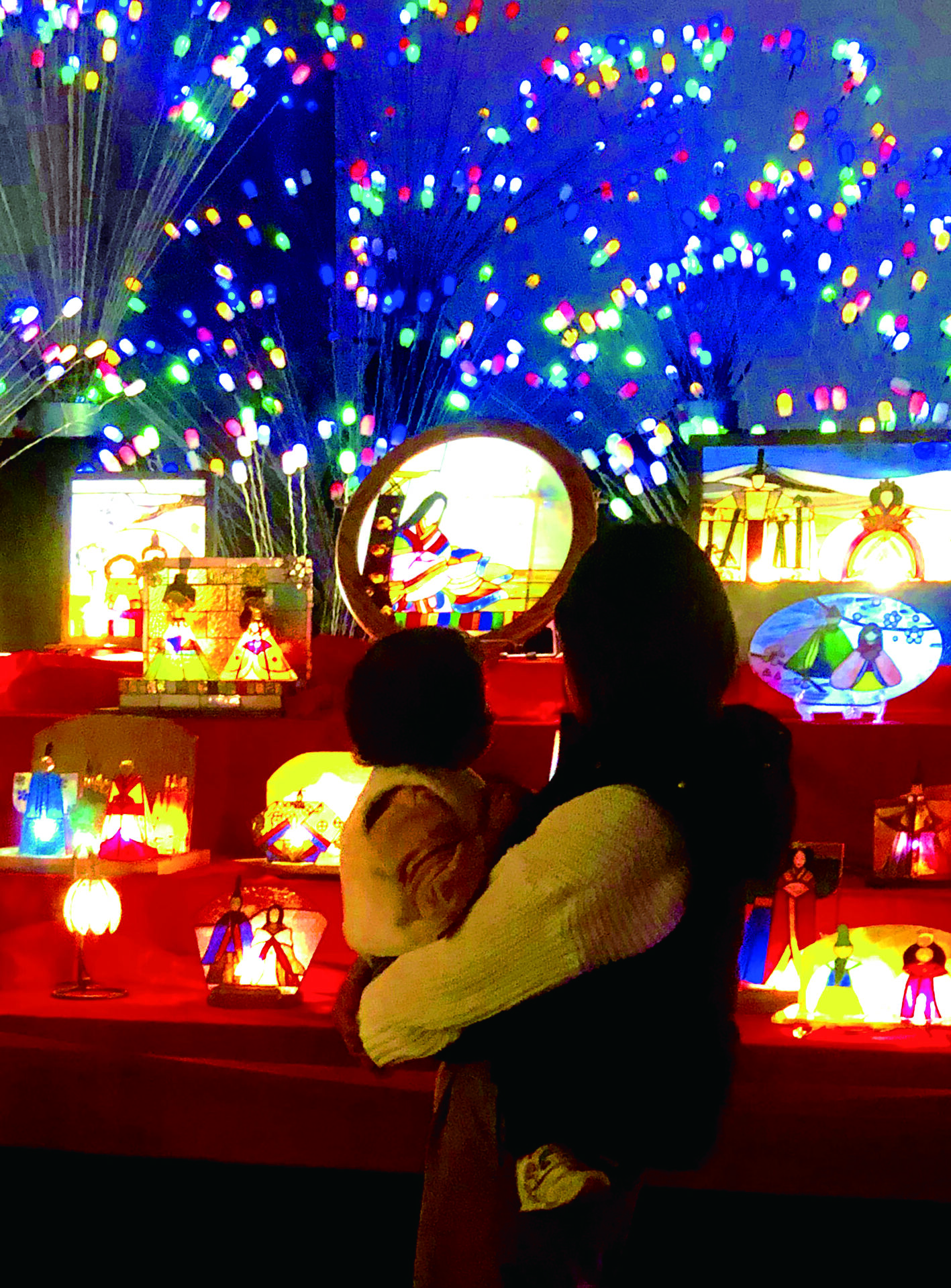 赤レンガにきらめく、100体以上のステンドグラスのお雛様