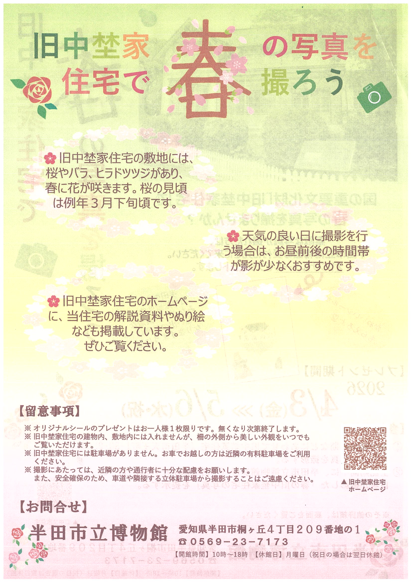 ◇参加方法:①花の開花時期などにあわせて旧中埜家住宅