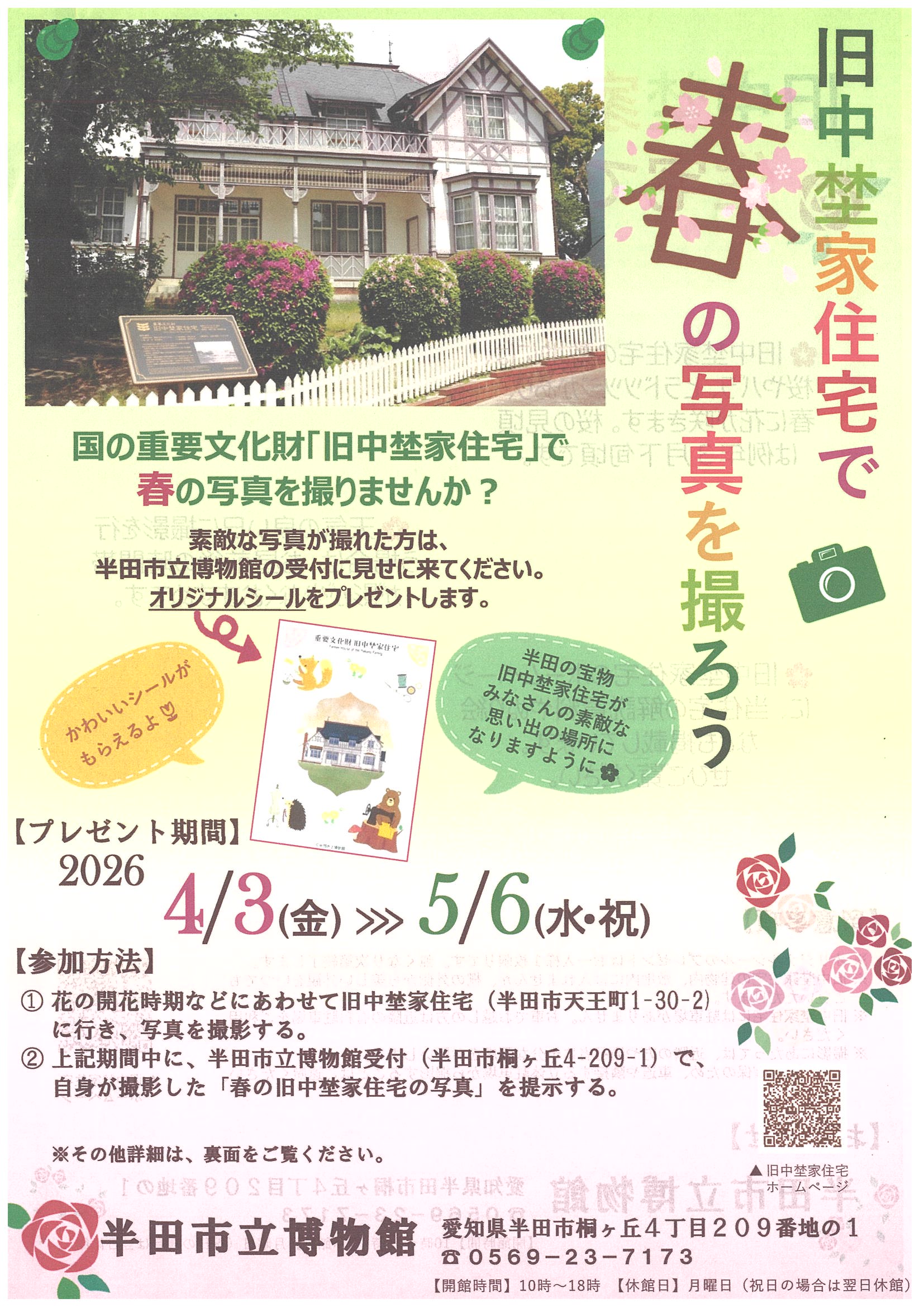 素敵な写真が撮れた方は、半田市立博物館の受付に見せに来てください。