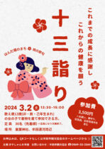今年のテーマ「虹」に因んだ工作やナゾ解きをして遊ぼう! くまねこ大サァカスやチアダンスのステージやワークショップ、スタンプラリーも開催。ハンドメイドのお店やキッチンカーも来ますよ。 ◇開催日:2024年12月8日(日) ◇時 間:9:30~…»続きをみる
