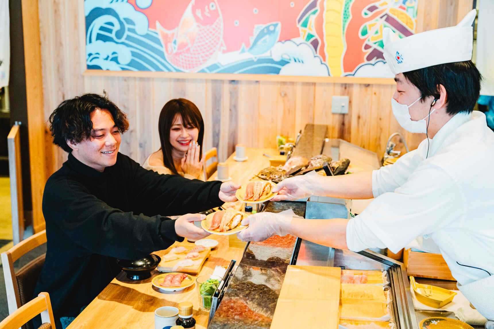 伊勢湾と三河湾に挟まれた知多半島の新鮮な魚介が味わえる魚太郎。広い店内では、その日に水揚げされた旬の地魚を使ったおすしを目の前で職人さんが握ってくれます。お土産コーナーやカフェも併設されており様々なシーンで活用いただけます。