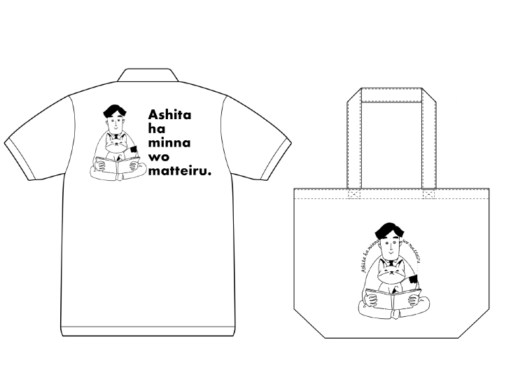 グッズデザインを使用したポロシャツとトートバックを現在市内二か所で販売しています。