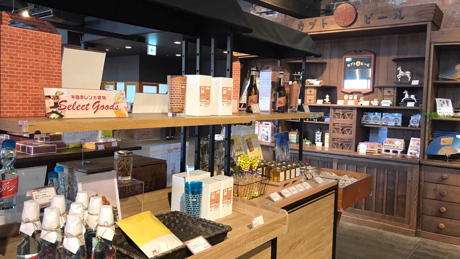 カブトビール&グラスセットをはじめ来館の思い出となる半田赤レンガ建物限定グッズや半田・知多地域の名産品を数多く取り揃えています。