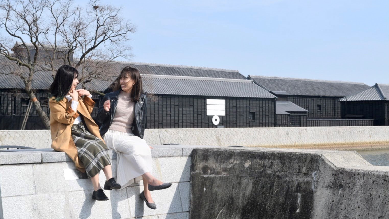 半田運河に撮影に来たらこれはマストな撮影スポット!黒壁にあるミツカンマークといっしょにいろいろなアングルで撮影を楽しんで!