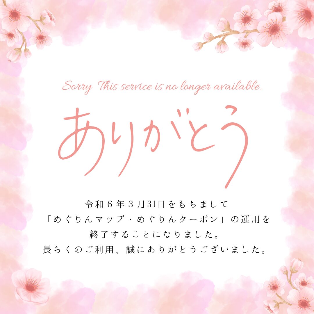 「めぐりんマップ・めぐりんクーポン」終了のお知らせ