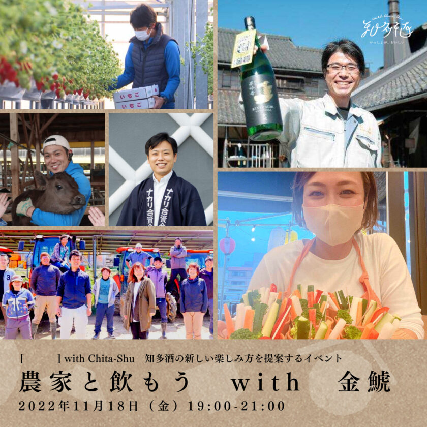 日程:2022年11月18日(金)19:00-21:00農家も酒蔵も大集合! みんなで一緒に楽しもう 知多半田駅前で、知多半島産の野菜や食材をふんだんに使った手料理や 知多の地酒が楽しめる昼さがりの酒場「農家の嫁」は、 オープンな雰囲気で誰でも気軽に立ち寄れるお店です。 今回、半田市亀崎町の「盛田金しゃち酒造」と知多半島の食材の生産者のみなさんが集まって 楽しく交流できる会を開催します。 つづき農場 が育てた酒米で作った日本酒や、 市野園芸のいちごを使用したリキュールで作るデザート。 定番の中利の豆味噌や生たまりしょうゆを使ったお料理や、 小栗牧場の和牛も登場! 難しいこと抜きの日本酒入門編の企画です。 みんなでいっしょに乾杯しましょう!